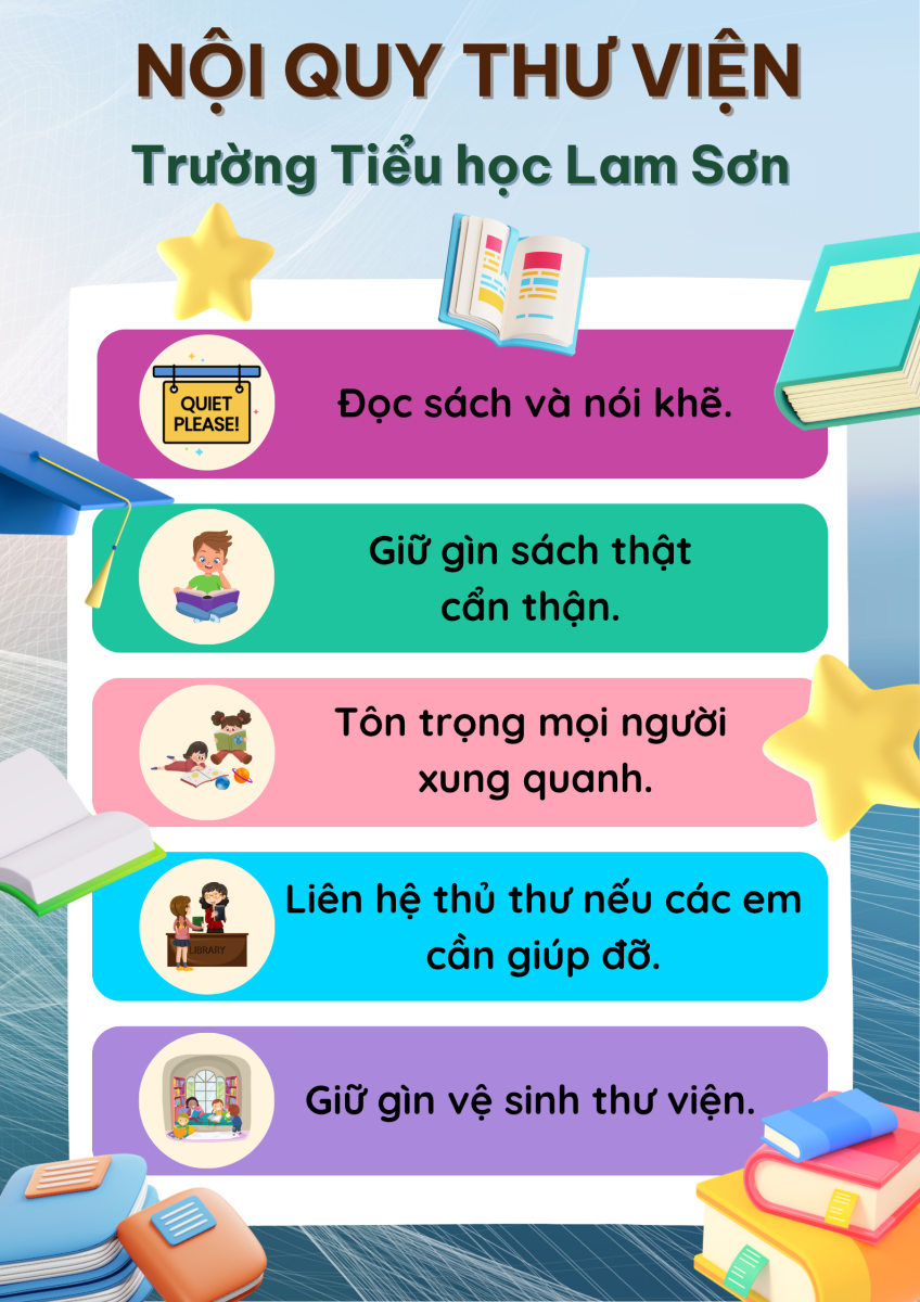 Trong thư viện của trường Tiểu học, mỗi học sinh đều phải giữ cho không gian yên tĩnh, tôn trọng sách và mọi người xung quanh. Việc trả sách đúng hạn và tình thần tự học là vô cùng quan trọng. Các em học sinh sẽ được hòa mình vào thế giới của tri thức, nơi nảy mình giữa những trang sách màu hồng và xanh, mang theo mùi của giấy in và cây viết mới mỗi khi bước chân vào.